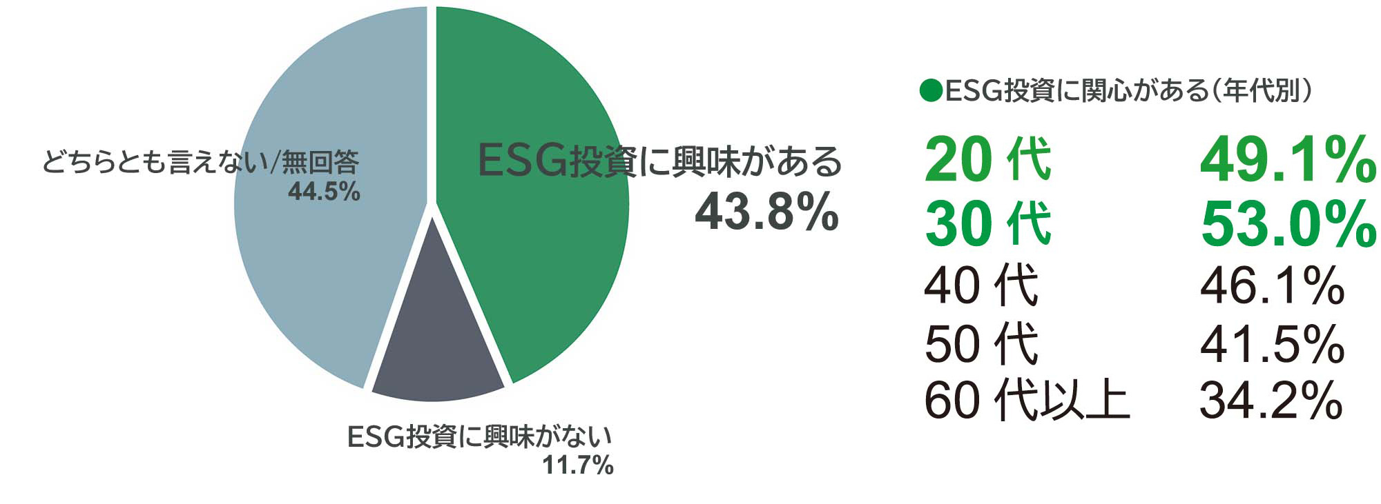 このように、身近にある課題と将来の不安がESG投資への関心の高さにもつながっていると推測されます。